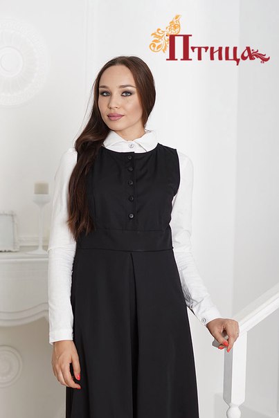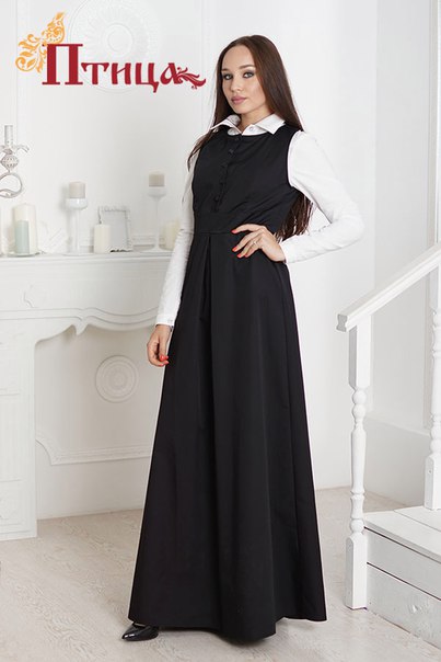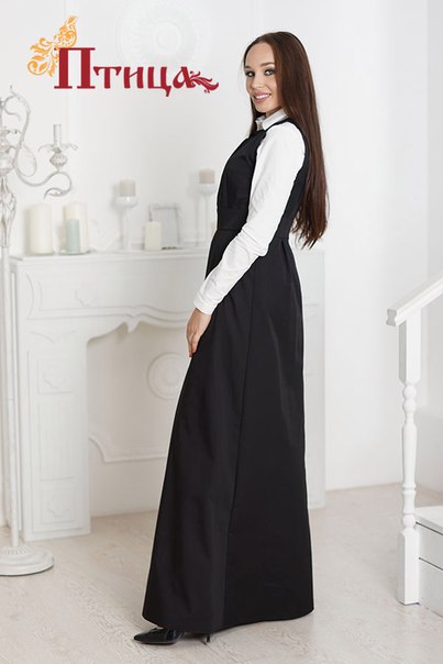 Сарафан "Офисный" отрезной по талии, линия талии завышенная. Юбка расклешенная к низу, по полочке встречная складка. Рельефы на полочке и спинке. Для удобства по среднему шву на спинке застежка на «молнию». По ...