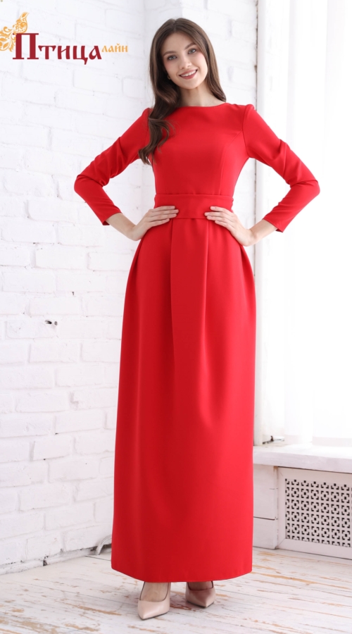 Платье женское отрезное по талии полуприлегающего силуэта. Юбка "Татьянка" с глубокими складками. Рукав втачной прямой, длинный. Для удобства по среднему шву на спинке застежка на «молнию». Горловина обработана...