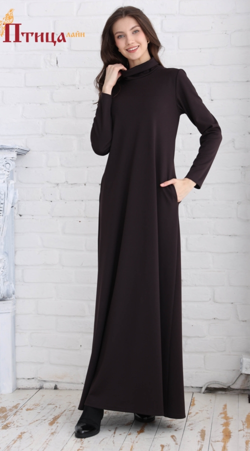 Платье трапециевидного силуэта, втачной рукав. Длинное платье, карманы в боковых швах. Элегантный силуэт, данный образ прекрасно подходит как на выход, так и на каждый день.Данная модель подходит на любой тип ф...