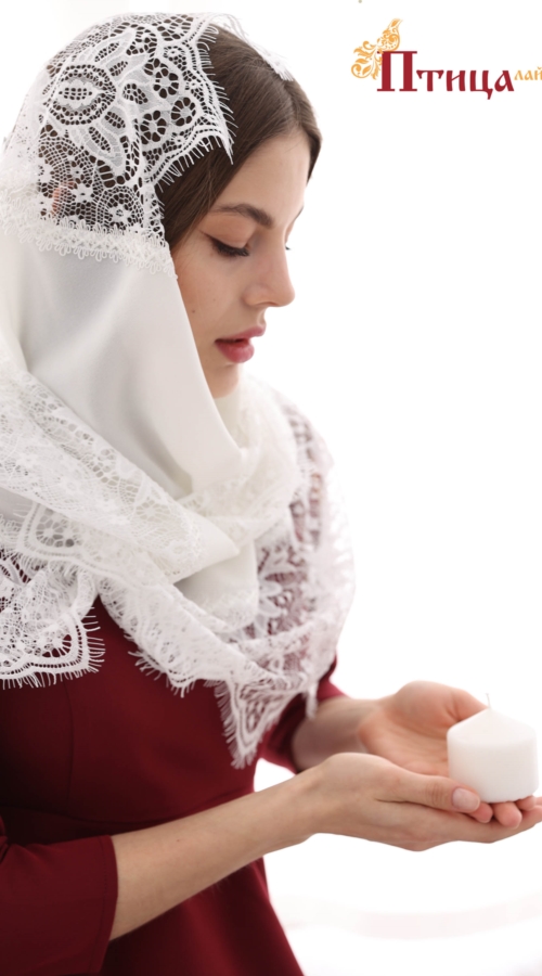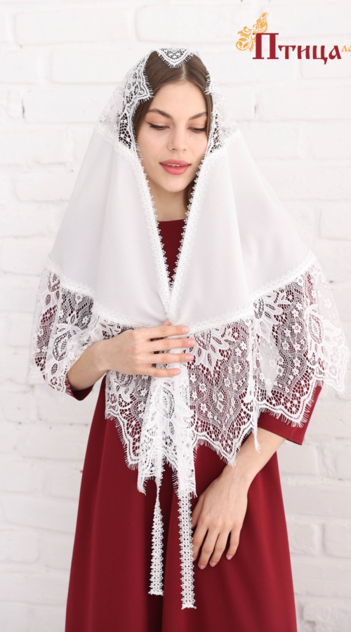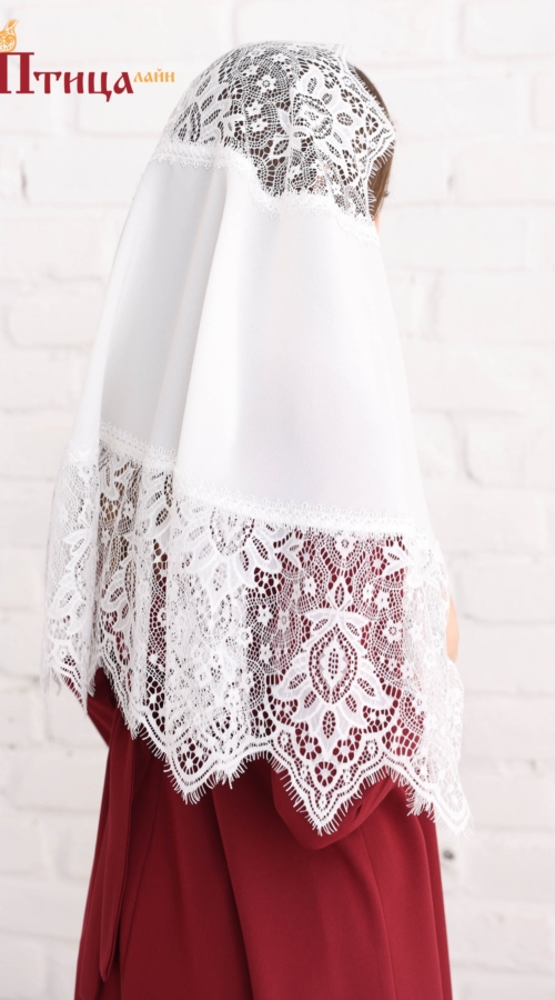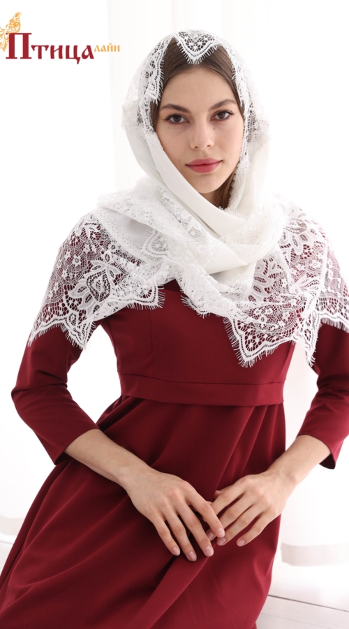 Платок - шаль из тонкой полупрозрачной ткани. Отделка кружевом ( кружевное нежное полотно пэ) молочно-бежевого цвета цвета с дизайнерским узором) Платок очень удобные, невесомый! Добавляет праздничности и в ...