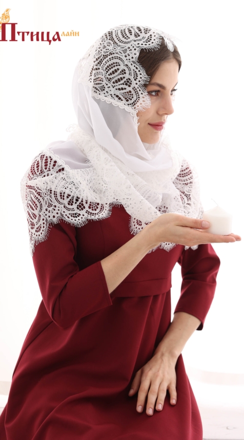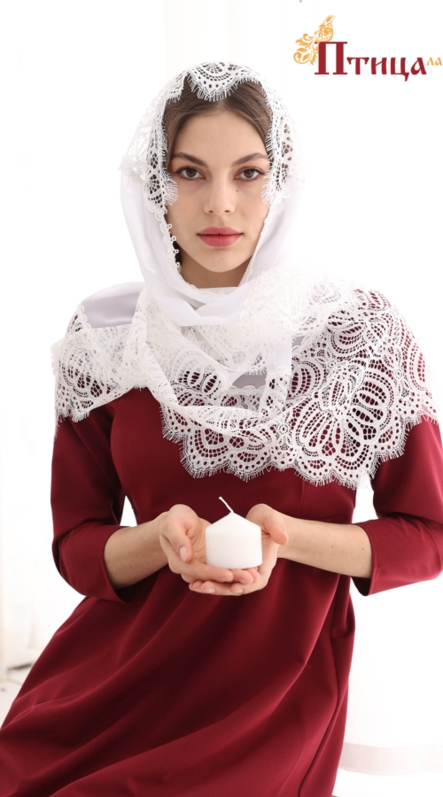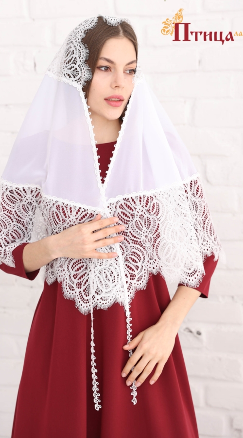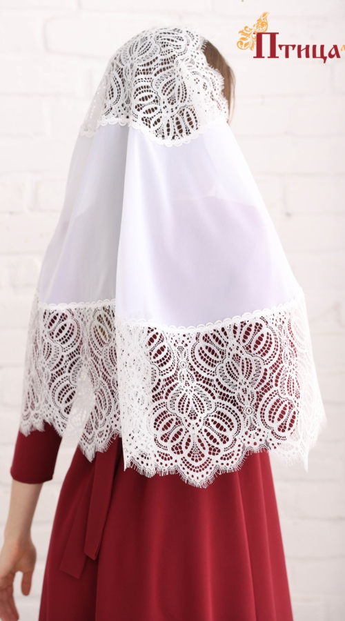 Платок - шаль из тонкой полупрозрачной ткани. Отделка кружевом ( кружевное нежное полотно пэ) молочно-бежевого цвета цвета с дизайнерским узором) Платок очень удобные, невесомый! Добавляет праздничности и в ...
