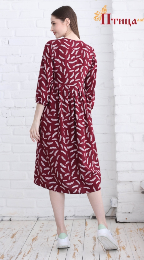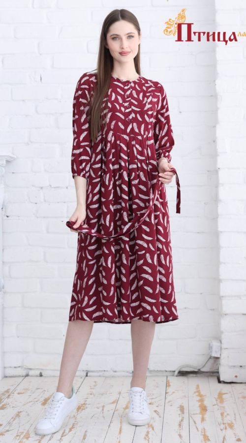 Элегантное женское платье, идеально подходящее каждой, модель с завышенной линией талии. Юбка широкая с со складками по центу изделия, по передней и задней части юбки. Рукав втачной, широкий, длиной 3/4 на рези...