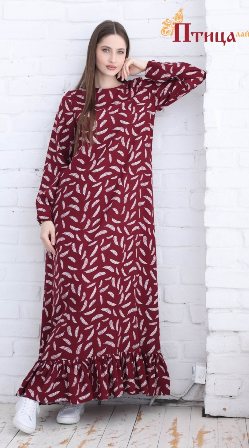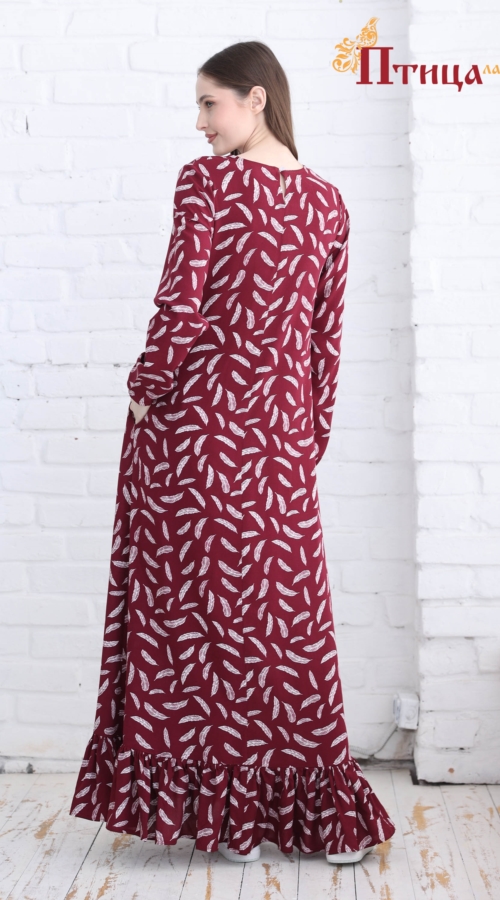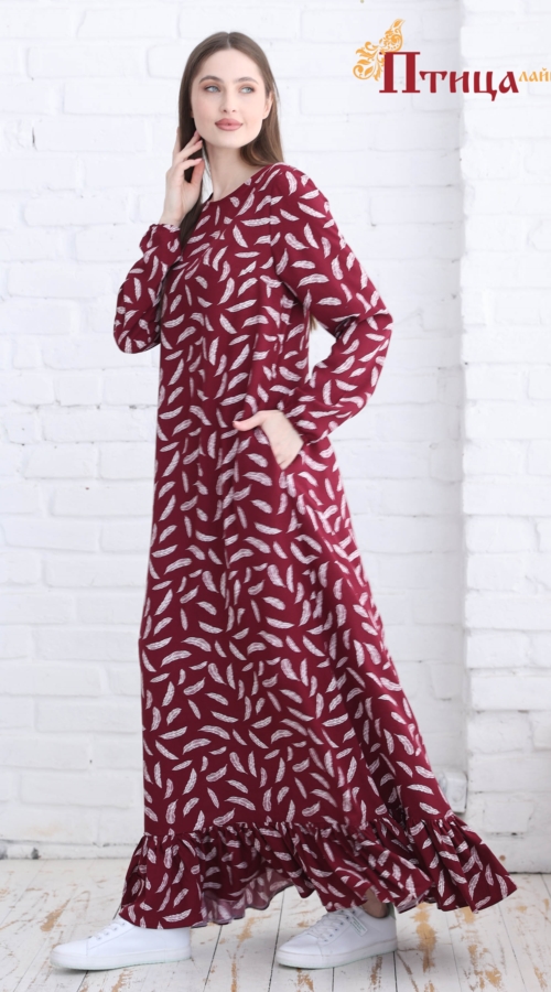 Платье трапециевидного силуэта с боковыми карманами и богатым воланом по низу юбки, динамичный, завораживающий образ. Втачной, длинный рукав, прямой не зауженный на резиночке, позволяет варьировать длину рука...