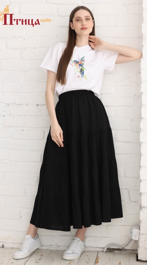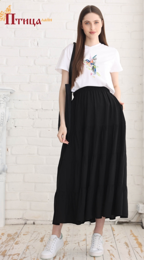 Богатая, шикарная юбка "Ярусная" выполненная из тонкой джинсы, юбка с хорошим шагом. За счет шикарной сборки 4 ярусов и плотности ткани, юбка имеет необыкновенное расклешение и великолепно держит форму. Пояс ...