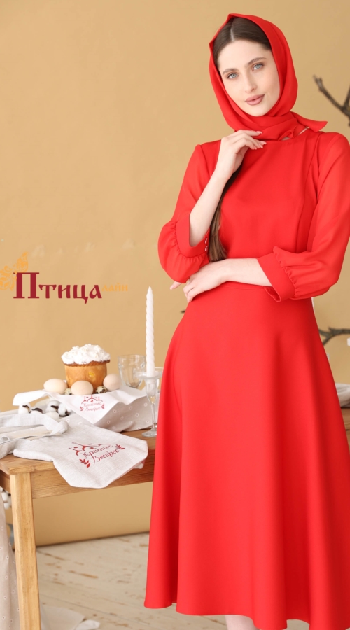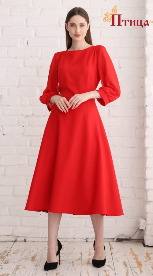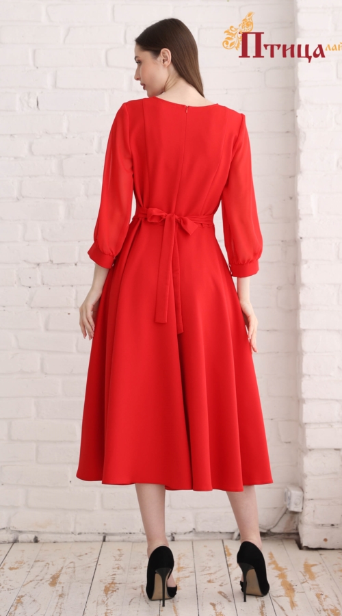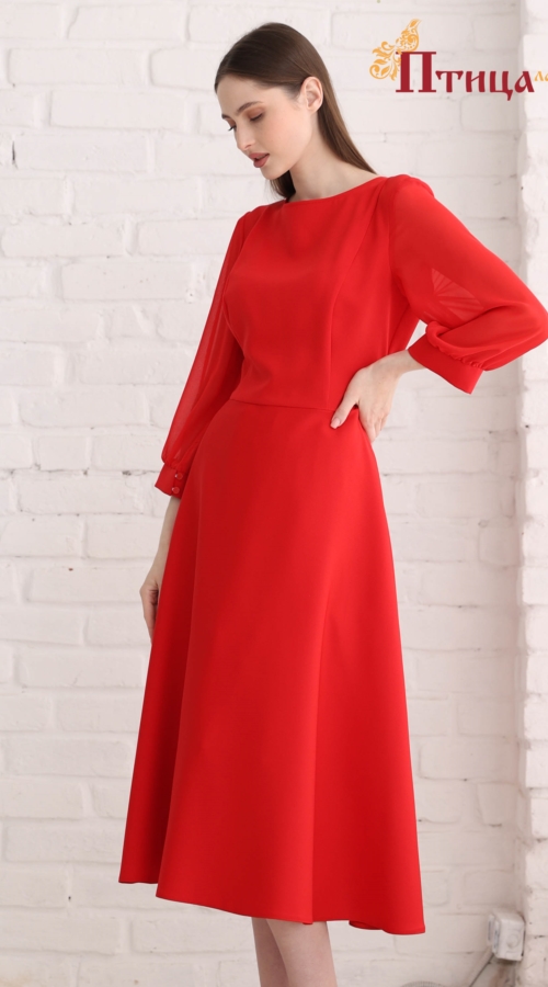 Романтичный, нежный образ: платье приталенного силуэта, с отрезной линией талии. Женственный силуэт достигается за счет рельефов по полочки и спинки, рукав выполнен из тонкого шифона длиной 3/4. Необыкновенной ...