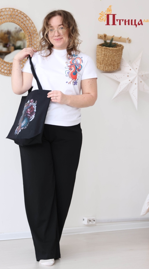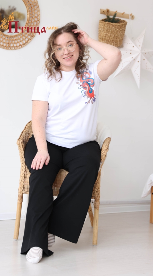 Пижама женская с брюками - невероятно удобный вариант одежды для дома и сна. Домашний костюм пошит из натурального хлопка, легкого и тактильно приятного материала. Пижама состоит из футболки и брюк. Комплект ов...