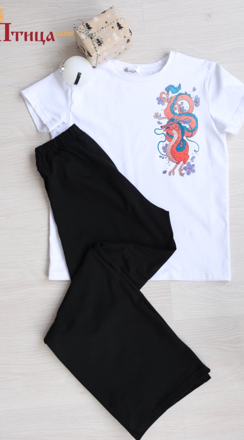 Пижама женская с брюками - невероятно удобный вариант одежды для дома и сна. Домашний костюм пошит из натурального хлопка, легкого и тактильно приятного материала. Пижама состоит из футболки и брюк. Комплект оверсайз свободно садится по фигуре, но при этом выглядит женственным и сексуальным. Костюм летний женский из премиум 100% хлопка идеально дополнит ваш домашний стиль, а размеры от самых маленьких до больших, помогут подобрать комплект на любую фигуру.