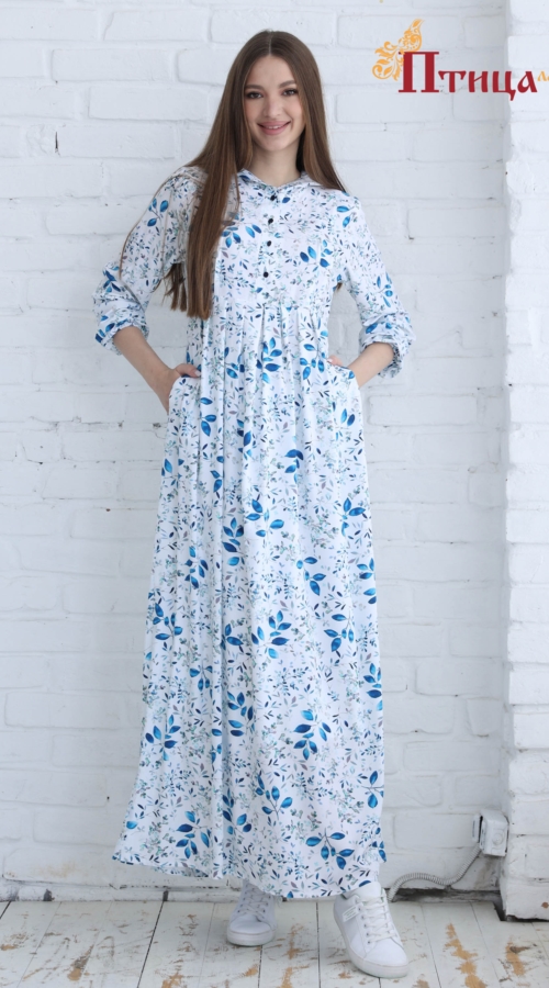 Платье женское с капюшоном отрезное по талии, линия талии завышенная. Юбка широкая с со складками по центу изделия, по передней и задней части юбки, что создает дополнительную свободу в области талии и бедер. Р...