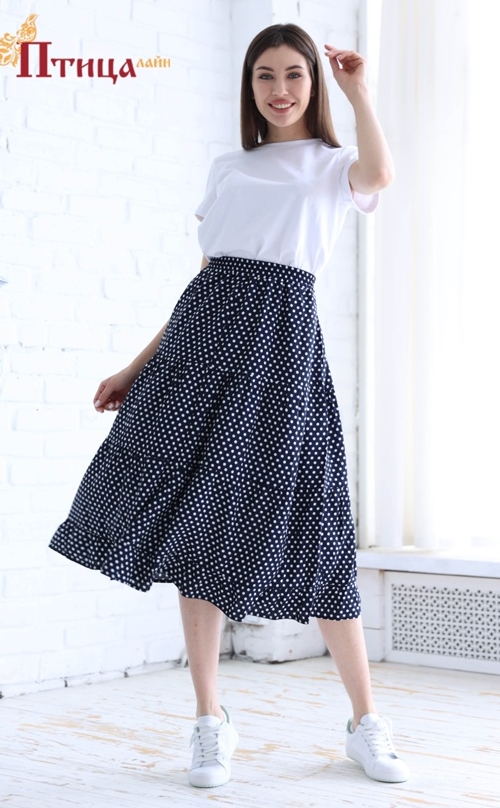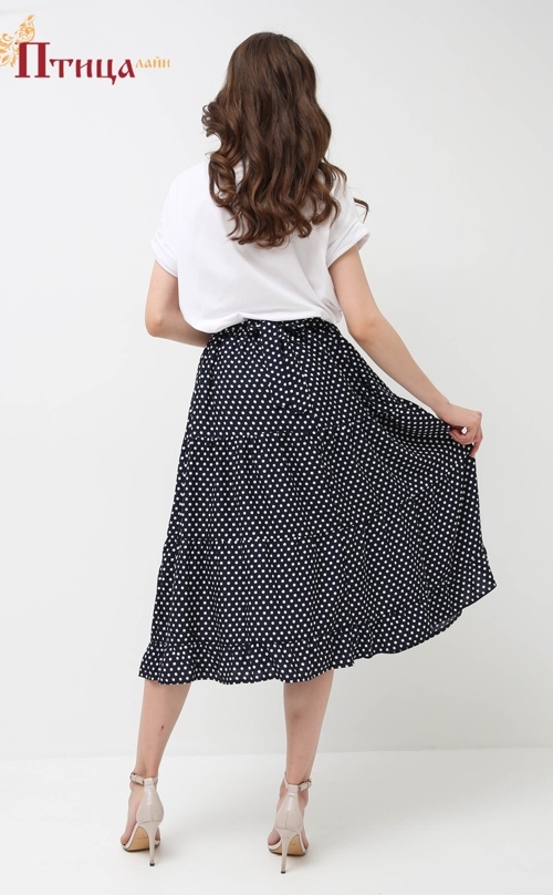 Юбка в 4 яруса, с шикарным расклешением, юбка с хорошим шагом. Оригинальный пояс, собранный на эластичную ленту, прекрасно подчеркивает талию, дополнен декоративными поясочками. Контраст фиксированной талии и ...