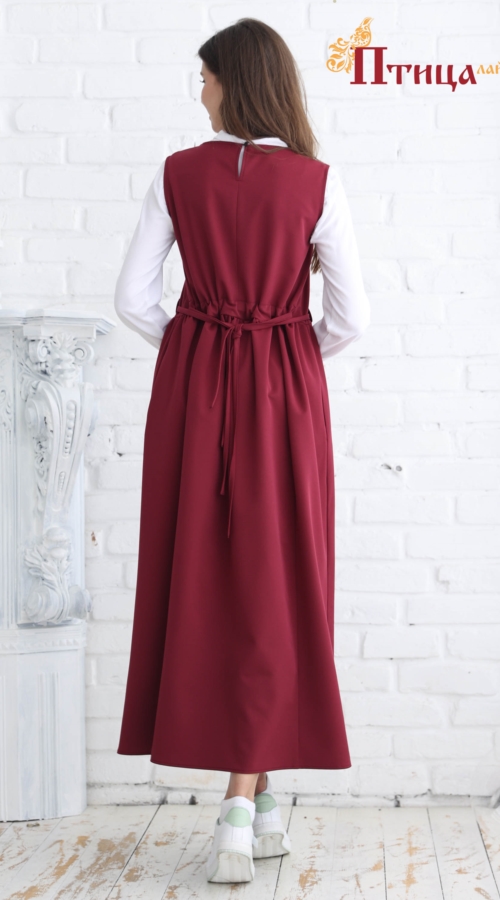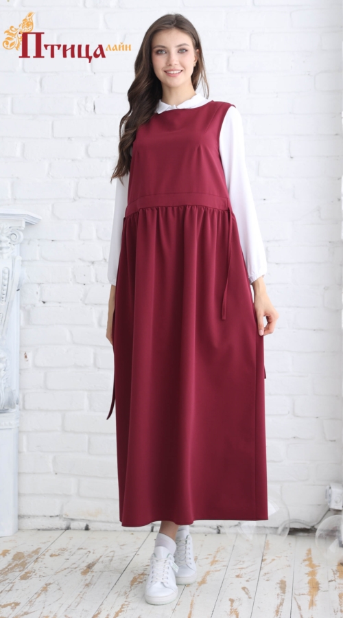 Сарафан с отрезной, завышенной линией талии. Юбка широкая, прямая, с кулиской . Равномерная сборка по линии талии украшает данный лаконичный образ. Идеальную посадку дарит нагрудная выточка, выходящая из пле...