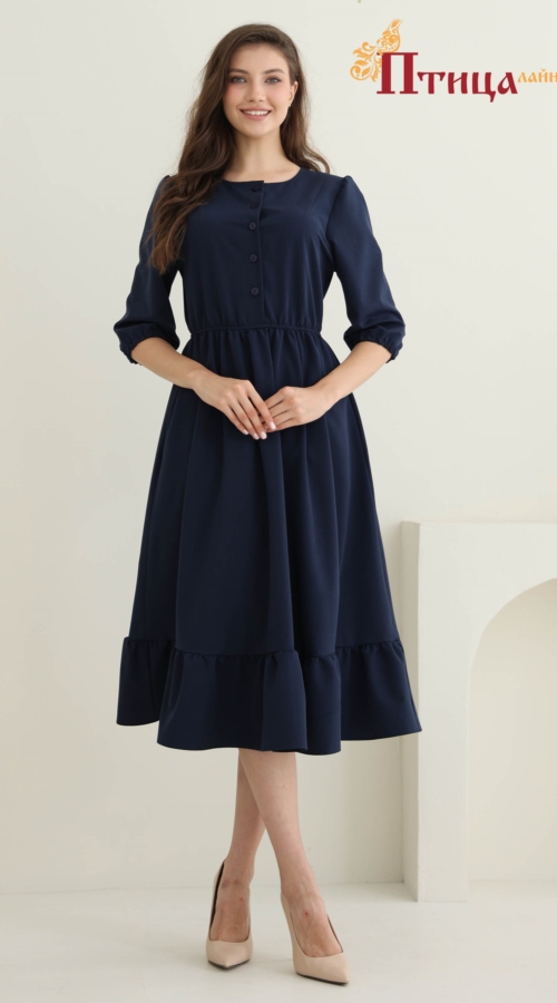 Великолепное платье выполненное с отрезной линией талии собранной на резинку, полуприлегающего силуэта. Юбка с боковыми карманами и сборкой по линии талии. Удобство и комфорт движения обеспечивает хорошее раск...