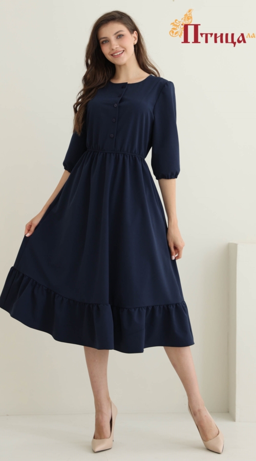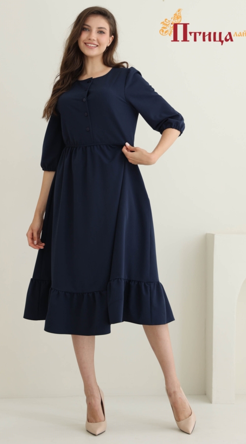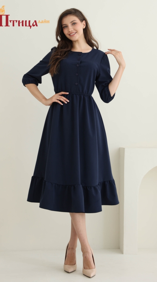 Великолепное платье выполненное с отрезной линией талии собранной на резинку, полуприлегающего силуэта. Юбка с боковыми карманами и сборкой по линии талии. Удобство и комфорт движения обеспечивает хорошее раск...