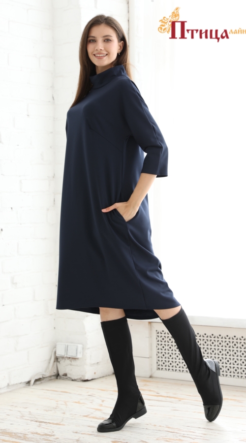 Платье трапециевидного силуэта с закругленными боками, с цельнокроенным рукавом, эффектно создают контраст мягкого низа и нешироких рукавов. Платье выполнено из плотного трикотажа, карманы в боковых швах очень ...