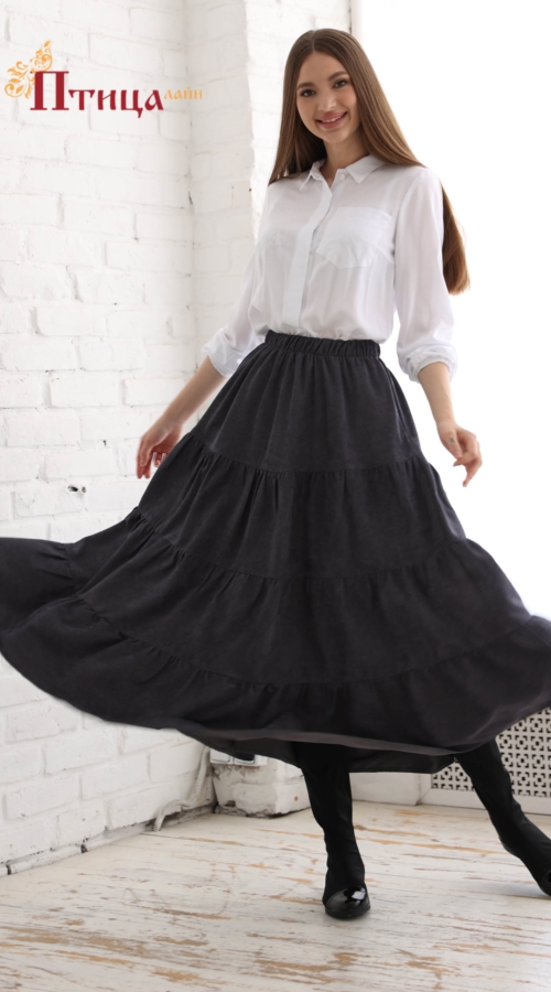 Богатая, шикарная юбка «Ярусная», выполненная из тонкой джинсы, юбка с хорошим шагом. За счет шикарной сборки 4 ярусов и плотности ткани, юбка имеет необыкновенное расклешение и великолепно держит форму. Поя...