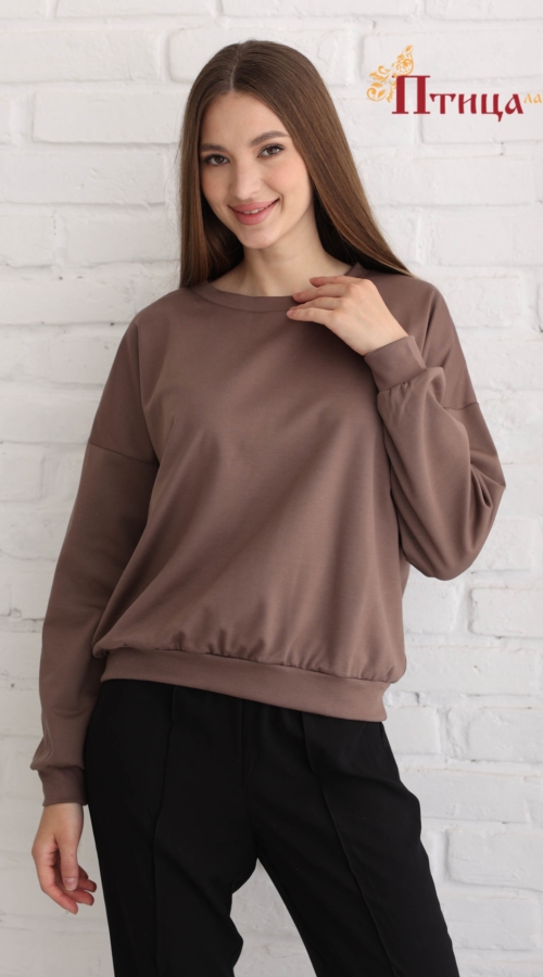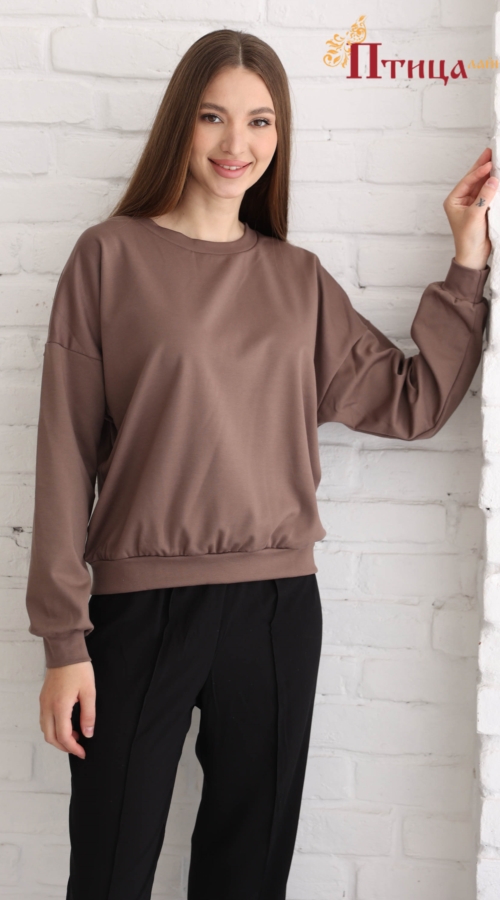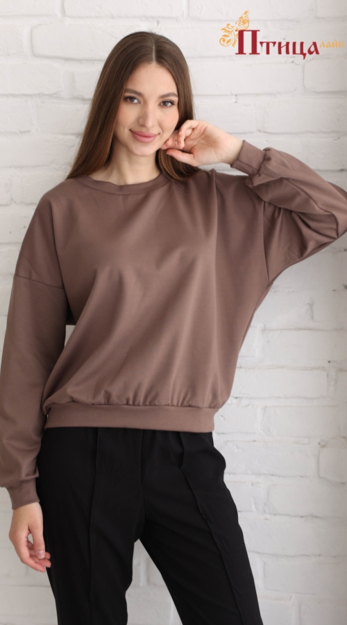 Свитшот современного кроя, дарит комфорт и свободу в движении, комбинируя данную модель с юбкой или брюками, Вы создаете динамичный, свободный, но в то же время женственный образ. Линия плеча спущена, рукав с п...