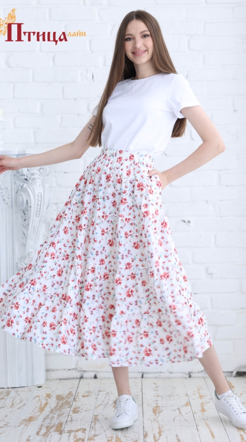 Богатая, шикарная юбка "Ярусная" выполненная из тонкой джинсы, юбка с хорошим шагом. За счет шикарной сборки 4 ярусов и плотности ткани, юбка имеет необыкновенное расклешение и великолепно держит форму. Пояс ...