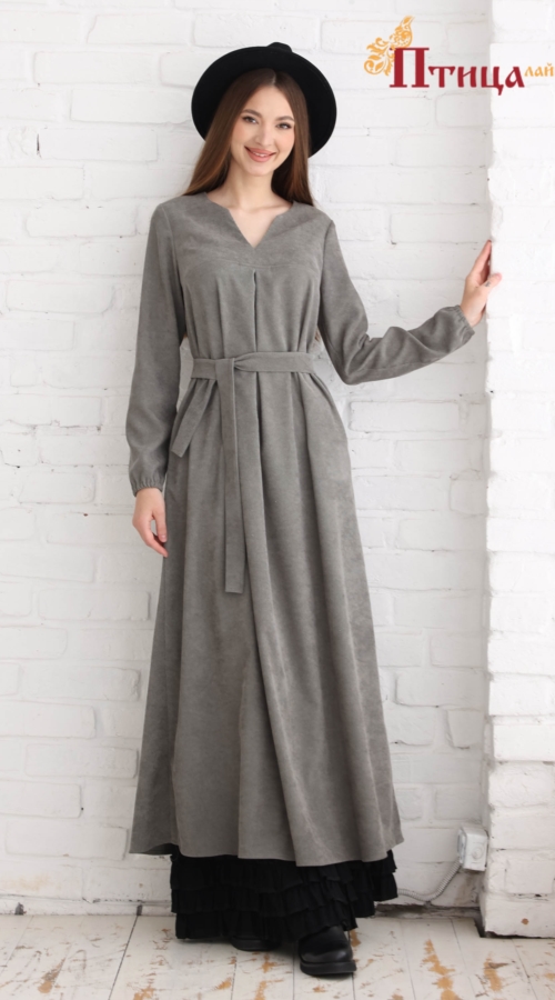 Платье трапециевидного силуэта с V-образным вырезом, с боковыми карманами и богатым воланом по низу юбки, динамичный, завораживающий образ. Втачной, длинный рукав, прямой, не зауженный, на резиночке, позволяет ...
