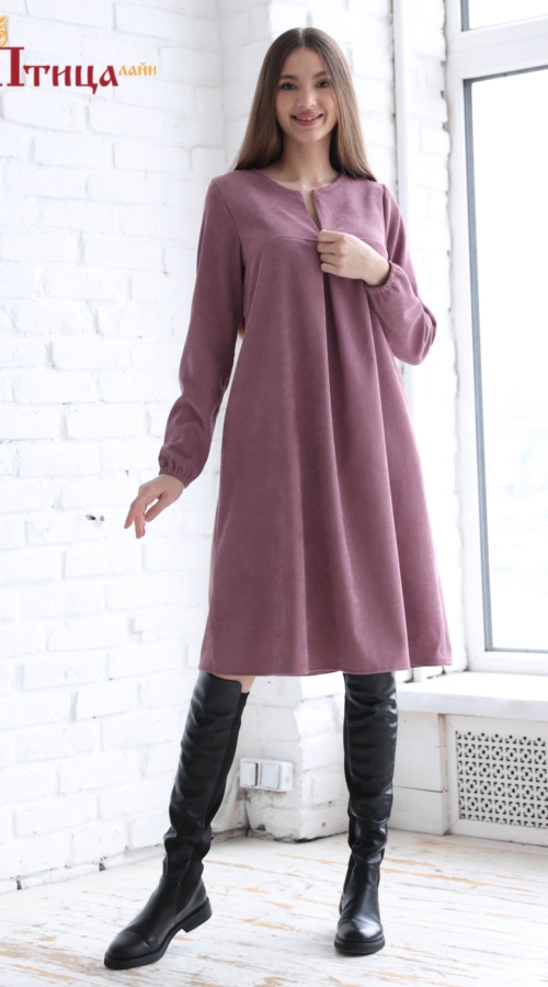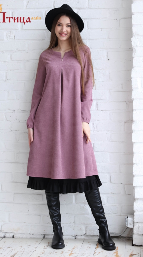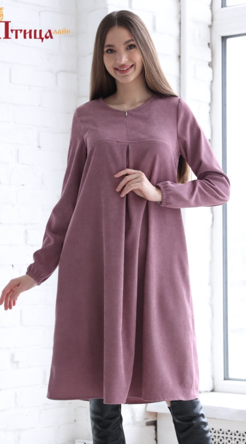 Платье женское трапециевидного силуэта. Рукав втачной на резинке. Платье идеально скрывающего все особенности фигуры. По центру полочки глубокая складка, и застежка на потайную молнию. Вырез горловины округлый....