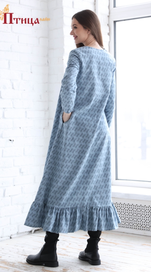 Платье трапециевидного силуэта с V образным вырезом, с боковыми карманами и богатым воланом по низу юбки, динамичный, завораживающий образ. Втачной, длинный рукав, прямой не зауженный на резиночке, позволяет...