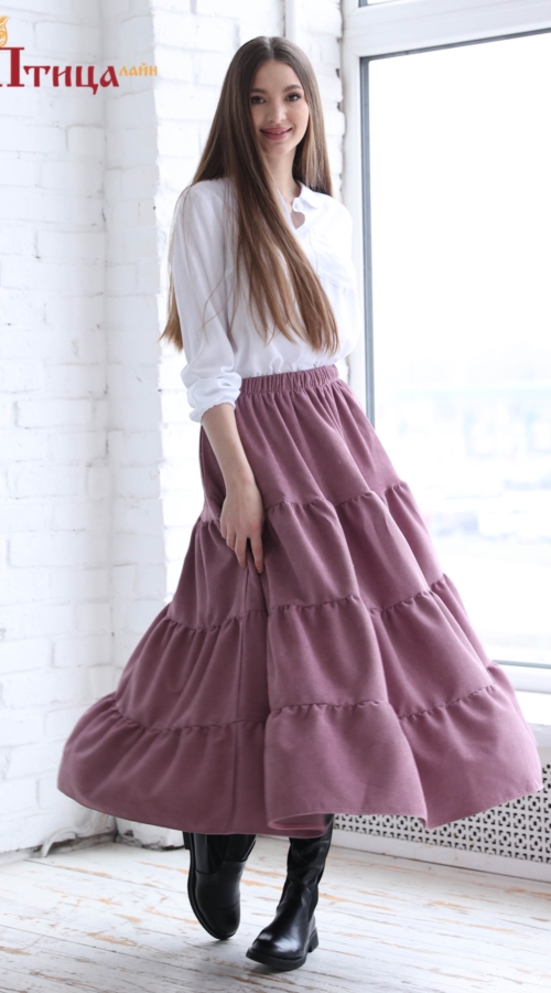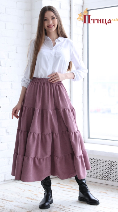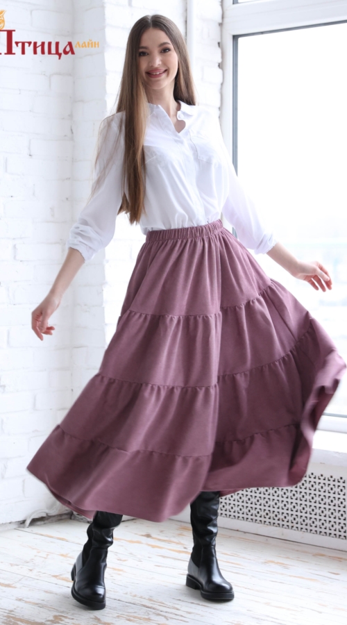 Богатая, шикарная юбка "Ярусная" выполненная из тонкой джинсы, юбка с хорошим шагом. За счет шикарной сборки 4 ярусов и плотности ткани, юбка имеет необыкновенное расклешение и великолепно держит форму. Пояс ц...