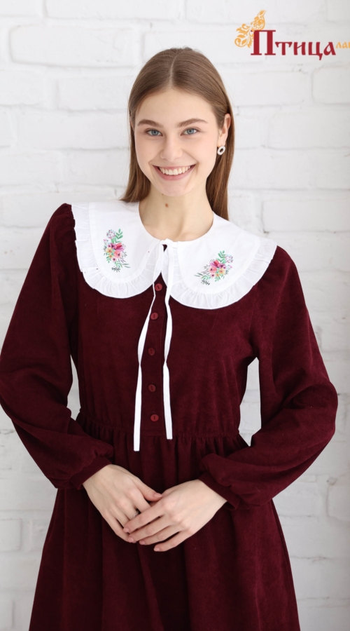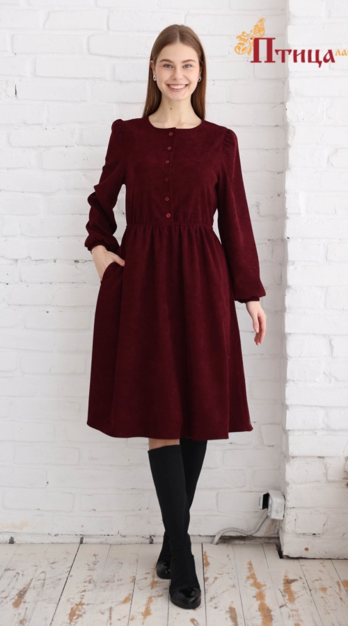 Великолепное платье, выполненное из вельвета, с отрезной линией талии, собранной на резинку, полуприлегающего силуэта. Юбка с боковыми карманами и сборкой по линии талии. Удобство и комфорт движения обеспе...