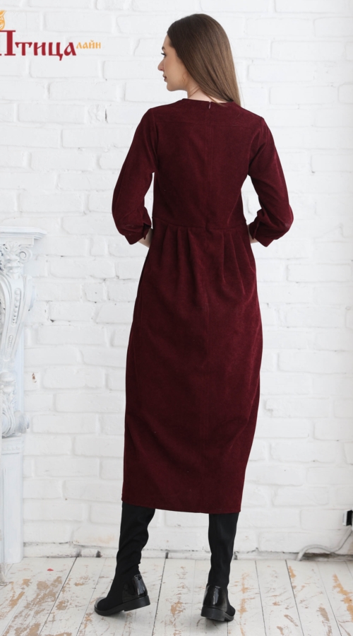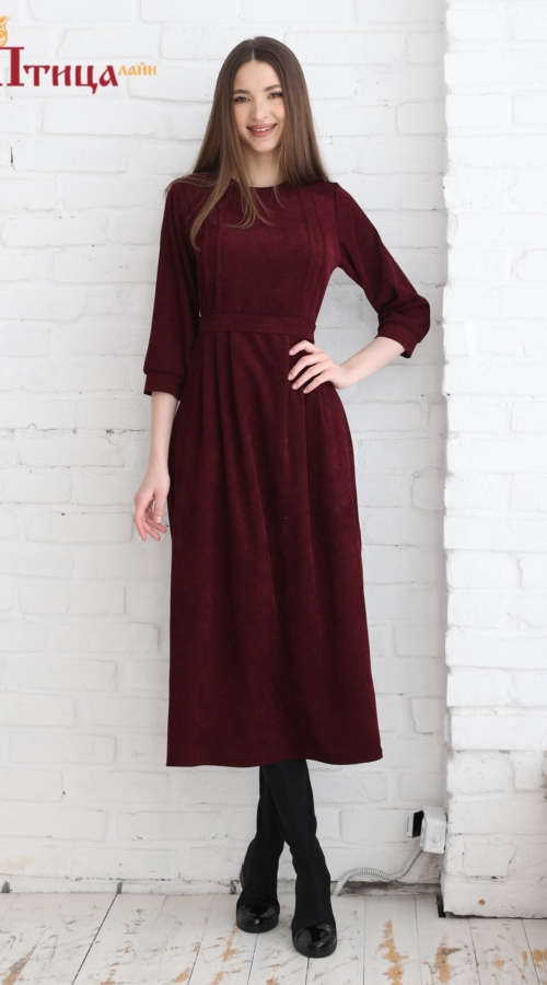 Эффектная модель платья с поясом с чуть завышенной линией талии. Юбка прямая с 6 складками по передней и задней части юбки, юбка имеет хороший шаг. Модель прямого силуэта, застежка по спинке на молнию. Рукав вт...