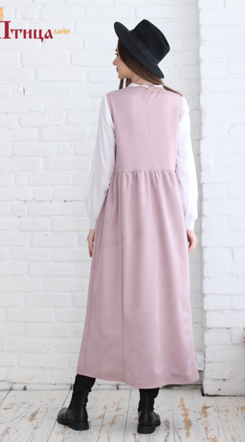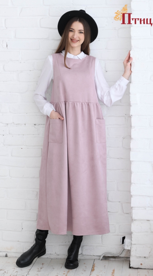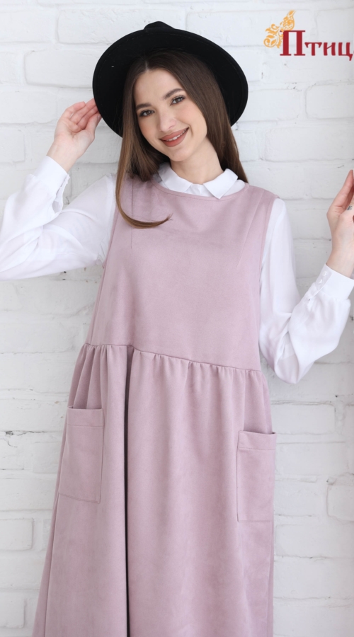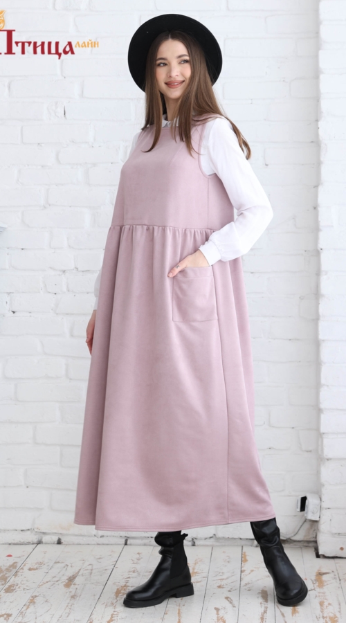 Сарафан с отрезной, завышенной линией талии. Юбка широкая, прямая. Равномерная сборка по линии талии украшает данный лаконичный образ. Идеальную посадку дарит нагрудная выточка, выходящая из плечевого шва. ...
