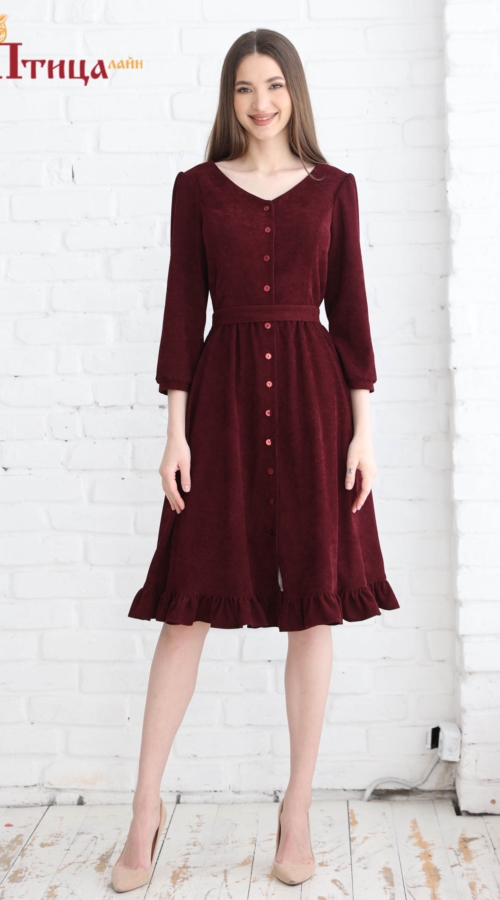 Стильное дизайнерское женское платье-миди в стиле ретро с рукавом 3/4. Спереди застегивается на пуговицы. Базовое повседневное платье, которое можно сочетать с чем угодно. Подходит и для праздников, и для повсе...