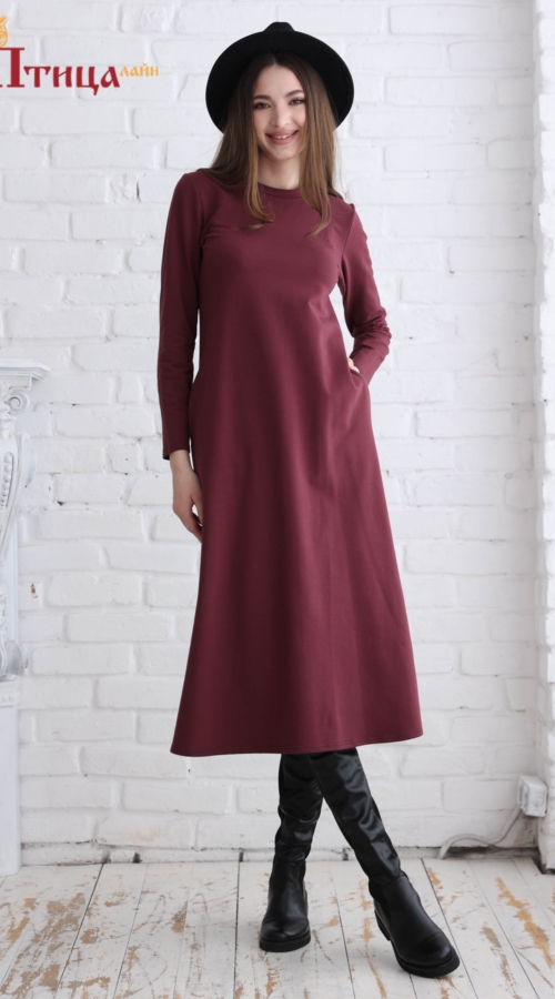 Платье трапециевидного силуэта с втачным рукавом . Платье длинной миди , карманы в боковых швов. Современный, удобный образ прекрасно подходит для прогулок в прохладный период. Данная модель подходит на любой ...