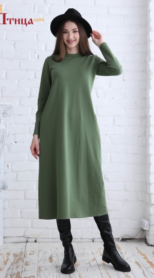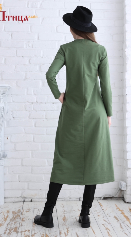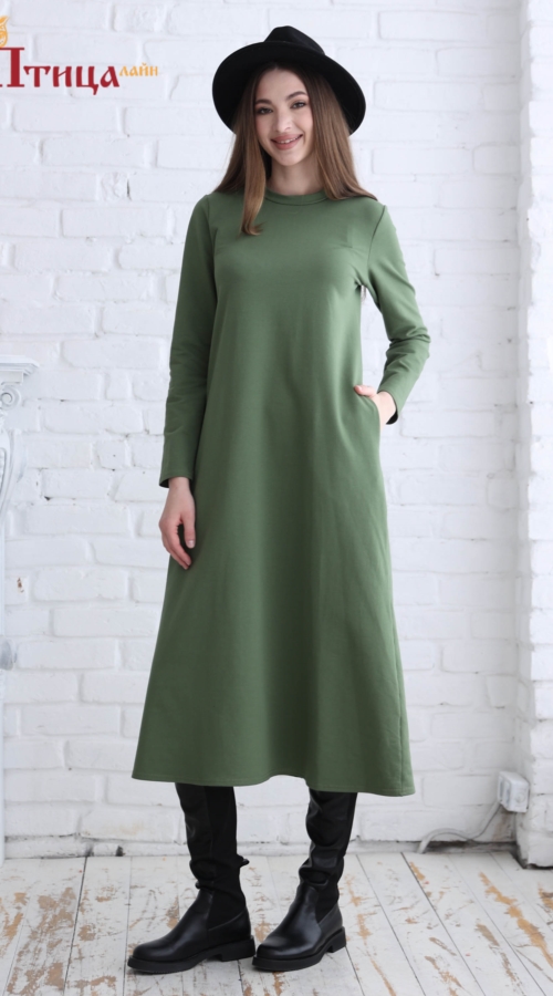 Платье трапециевидного силуэта с втачным рукавом . Платье длинной миди , карманы в боковых швов. Современный, удобный образ прекрасно подходит для прогулок в прохладный период. Данная модель подходит на любой ...