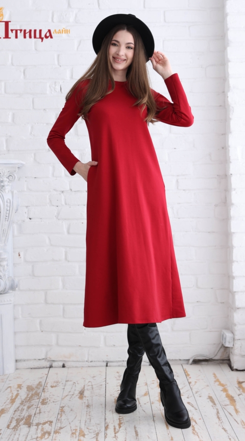 Платье трапециевидного силуэта с втачным рукавом . Платье длинной миди , карманы в боковых швов. Современный, удобный образ прекрасно подходит для прогулок в прохладный период. Данная модель подходит на любой ...
