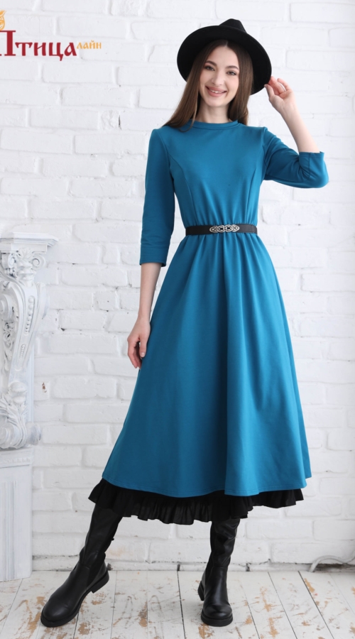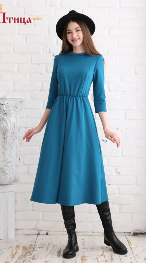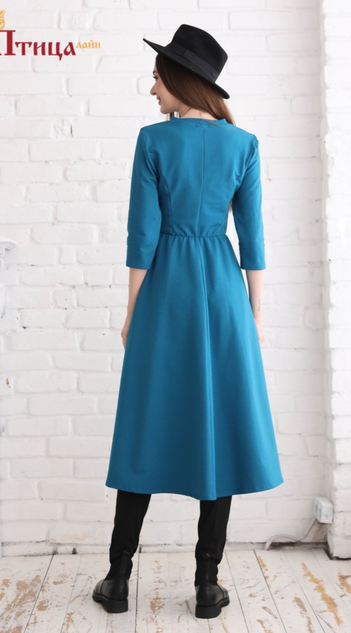 Романтичный осенний образ: платье приталенного силуэта, с отрезной линией талии, длиной миди. Женственный силуэт достигается за счет рельефов по полочки и спинки, рукав зауженный длиной 3/4. Необыкновенной крас...