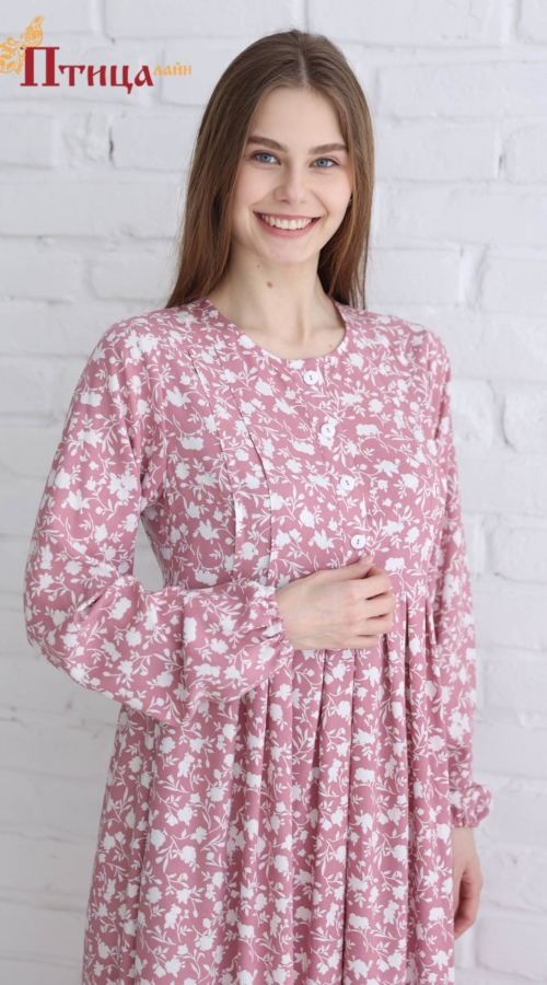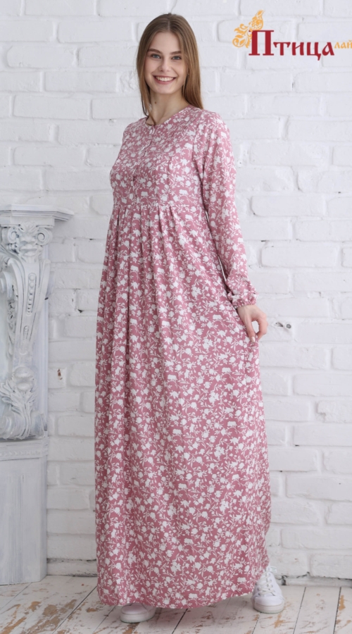 Платье женское отрезное по талии, линия талии завышенная. Юбка широкая с со складками по центу изделия, по передней и задней части юбки, что создает дополнительную свободу в области талии и бедер. Рукав втачной...