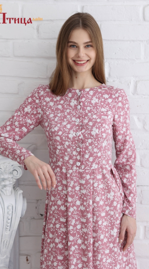 Стильное дизайнерское женское платье миди в ретро-стиле из нежного штапеля с длинным рукавом. Спереди застегивается на пуговицы, сзади по спинке – молния. Это базовое повседневное платье, которое легко сочетает...
