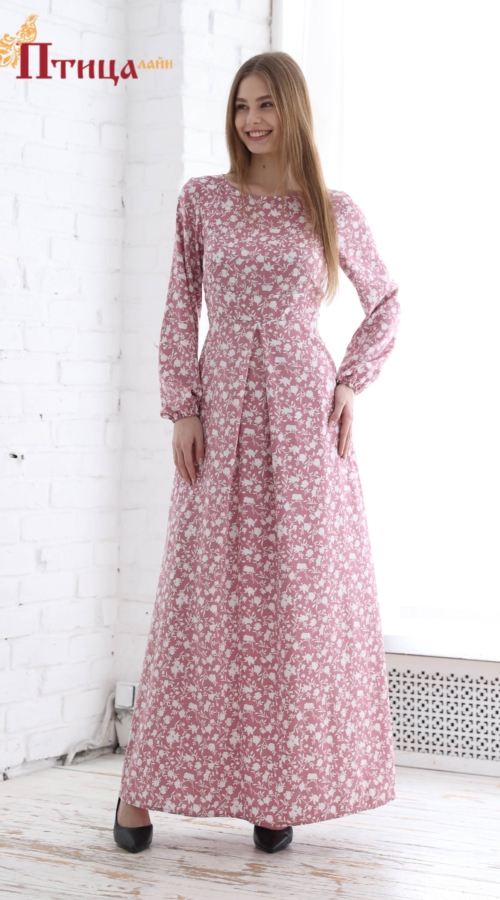 Платье отрезное с втачным пояском, линия талии завышенная. Для удобства по среднему шву на спинке застежка на «молнию». Украшение - вырез лодочкой, нежнейший штапель расцветка актуальная в каждом сезоне. Юбка...