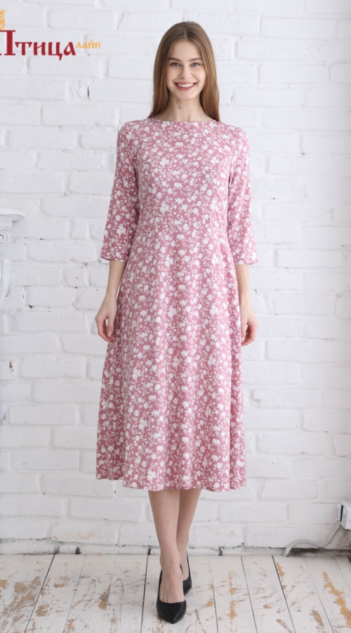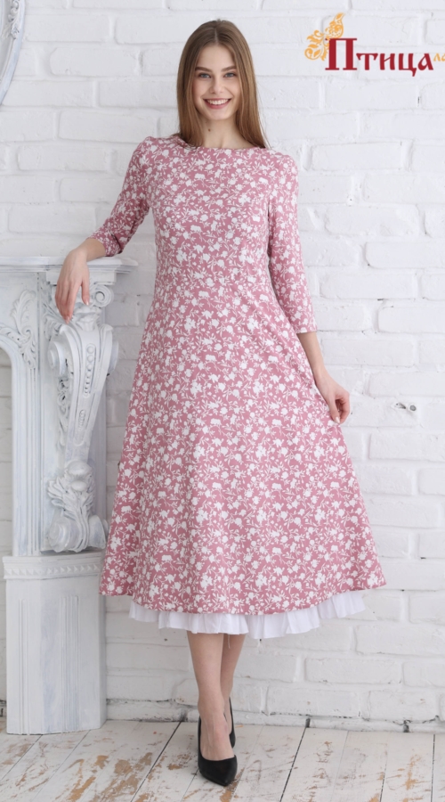 Романтичный образ: платье приталенного силуэта, с отрезной линией талии. Женственный силуэт достигается за счет рельефов по полочки и спинки, рукав зауженный длиной 3/4. Необыкновенной красоты юбка, с легкой сб...