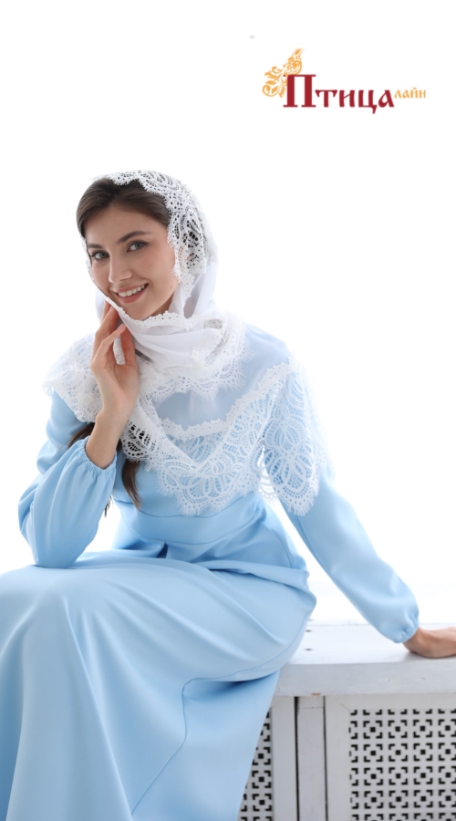 Нежный образ, приталенный силуэт, завышенная линия талии - более утонченного и идеального образа на венчание не возможно представить. Линия горловины и низ рукава украшен нежнейшим хлопковым, белым кружевом. Ю...