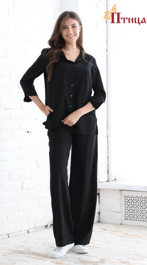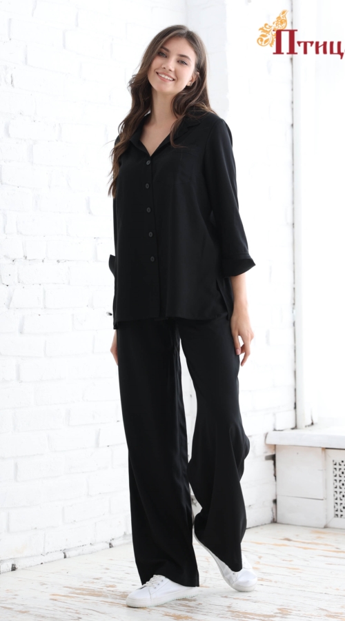 Великолепный костюм выполненный из штапеля. Рубашка свободного кроя. Свободные брюки с карманами и мягкой резинкой на талии. Комплект прекрасно садится по фигуре, но при этом выглядит женственно и эффектно. ...