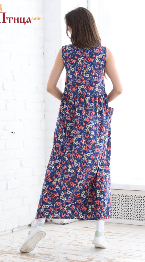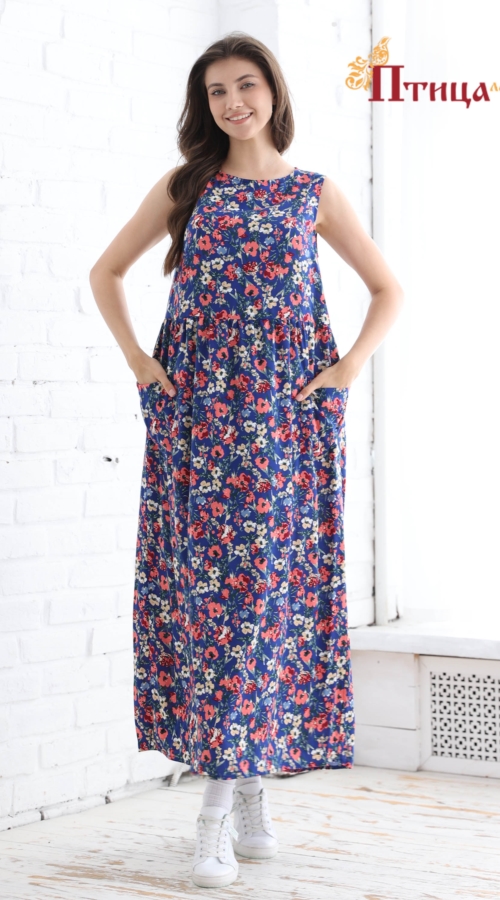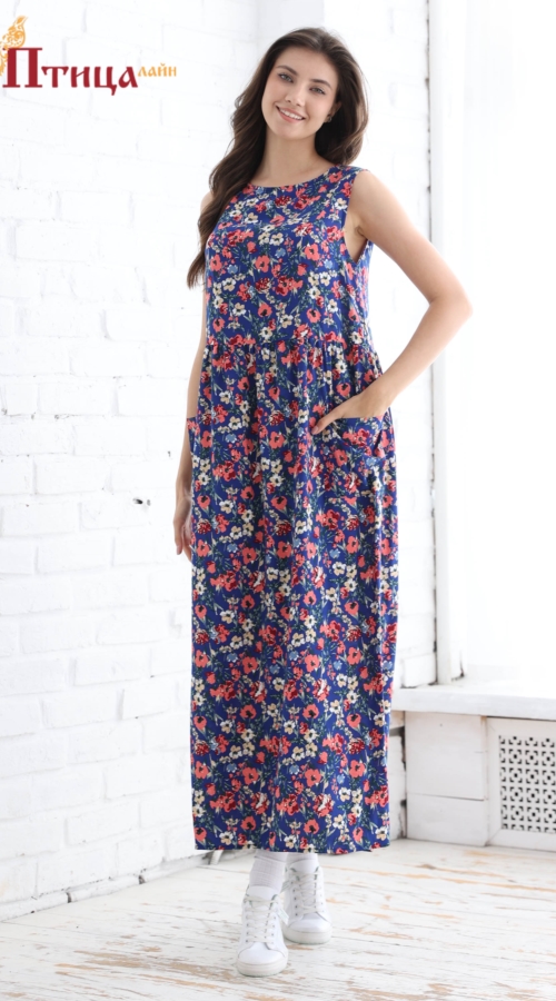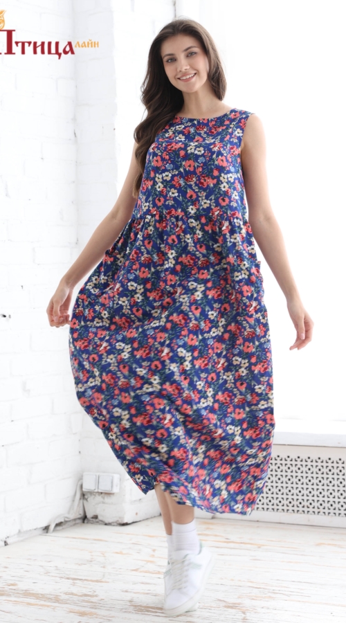 Сарафан с отрезной, завышенной линией талии. Юбка широкая, прямая. Равномерная сборка по линии талии украшает данный лаконичный образ. Идеальную посадку дарит нагрудная выточка, выходящая из плечевого шва. ...