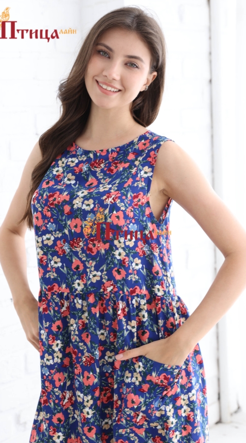 Сарафан с отрезной, завышенной линией талии. Юбка широкая, прямая. Равномерная сборка по линии талии украшает данный лаконичный образ. Идеальную посадку дарит нагрудная выточка, выходящая из плечевого шва. ...