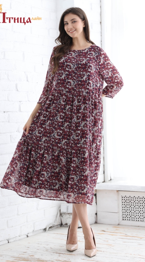 Женственное платье выполненное из нежнейшего шифона на подкладке, с роскошной ярусной юбкой, отрезное с завышенной линией талии. Равномерная сборка по двум ярусам украшает данный лаконичный образ. Рукав втачной...