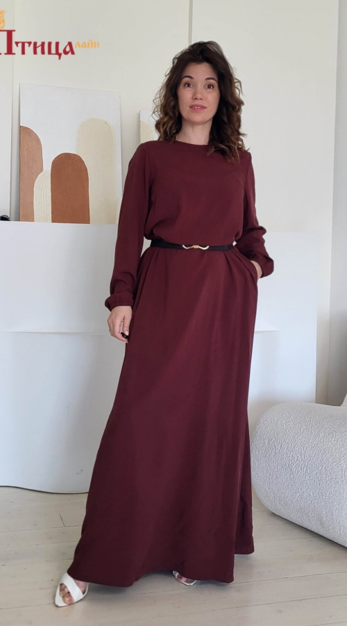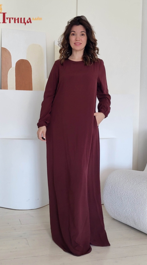 Платье вечернее «Свежий ветер» трапециевидного силуэта с боковыми карманами. Втачной, длинный рукав, прямой, не зауженный на резиночки. Застежка по спинке на пуговицу. Элегантный силуэт. Данное платье прекра...