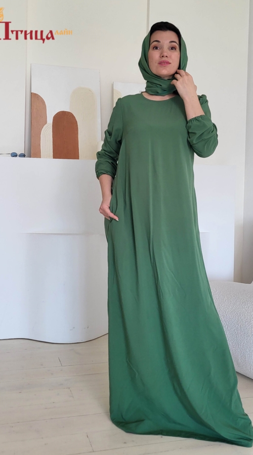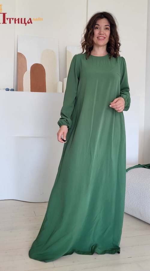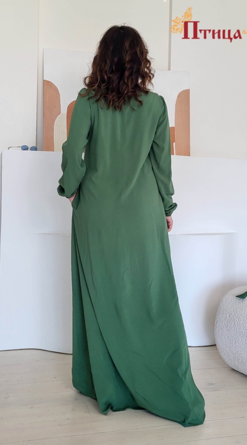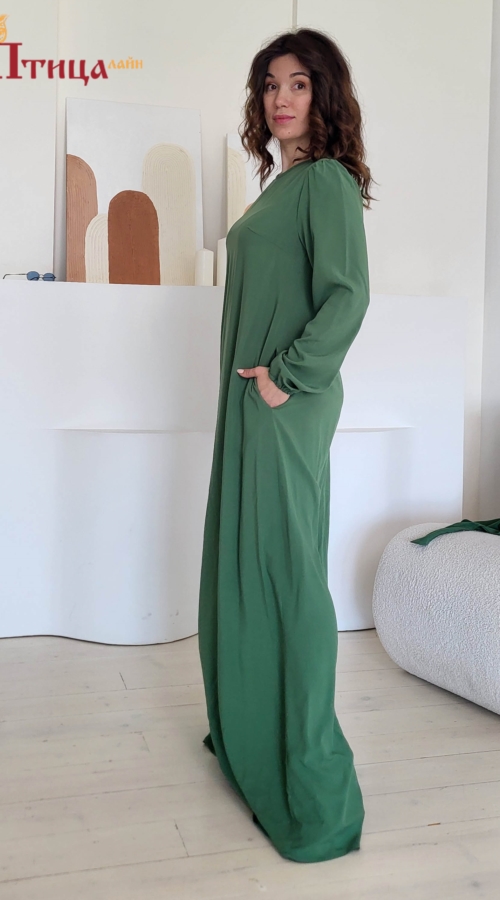 Платье вечернее "Свежий ветер" трапециевидного силуэта с боковыми карманами. Втачной, длинный рукав, прямой не зауженный на резиночки. Застежка по спинке на пуговицу. Элегантный силуэт. Данное платье прекрасн...