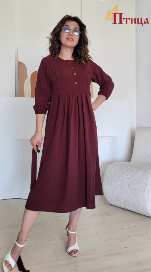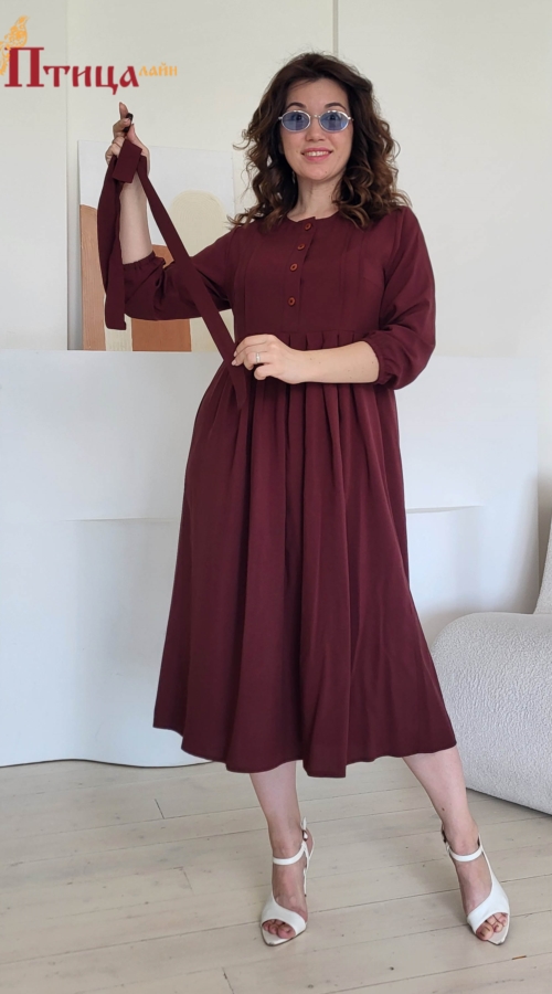 Элегантное платье с завышенной линией талии, идеально подходящее каждой. Юбка широкая, со складками по центру изделия, по передней и задней части юбки. Рукав втачной, широкий, длиной 3/4 на резинке. Украшение...