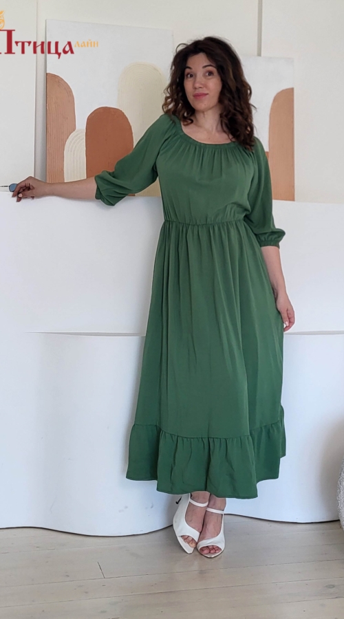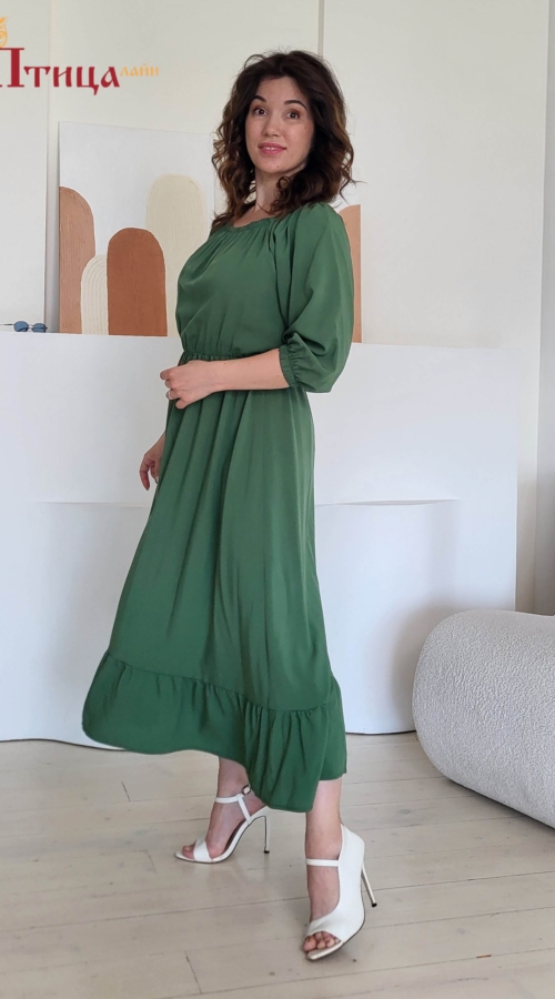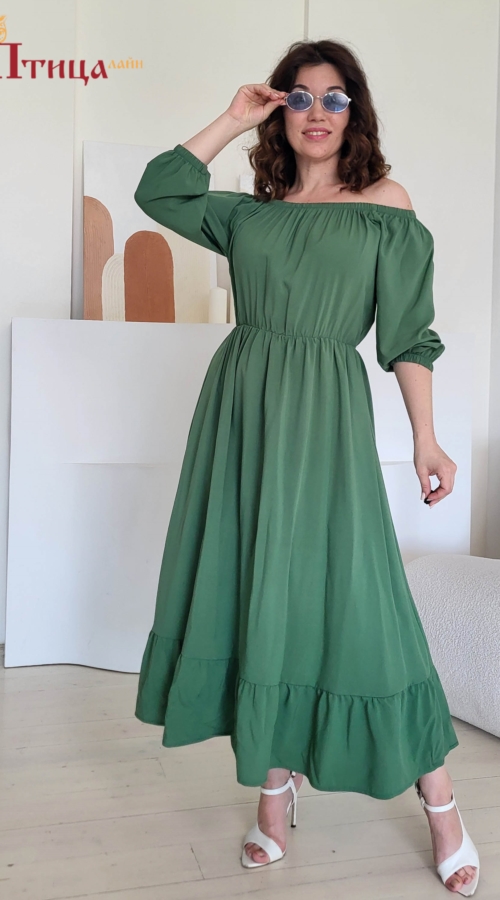 Необыкновенной красоты, платье с открытой линией плеча. Данный образ напоминает о море, солнце, летних теплых деньках, вечерних прогулках. Платье отрезное по талии, сборка на эластичную ленту по линии горловин...