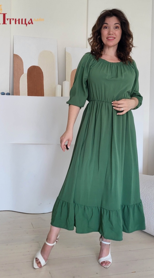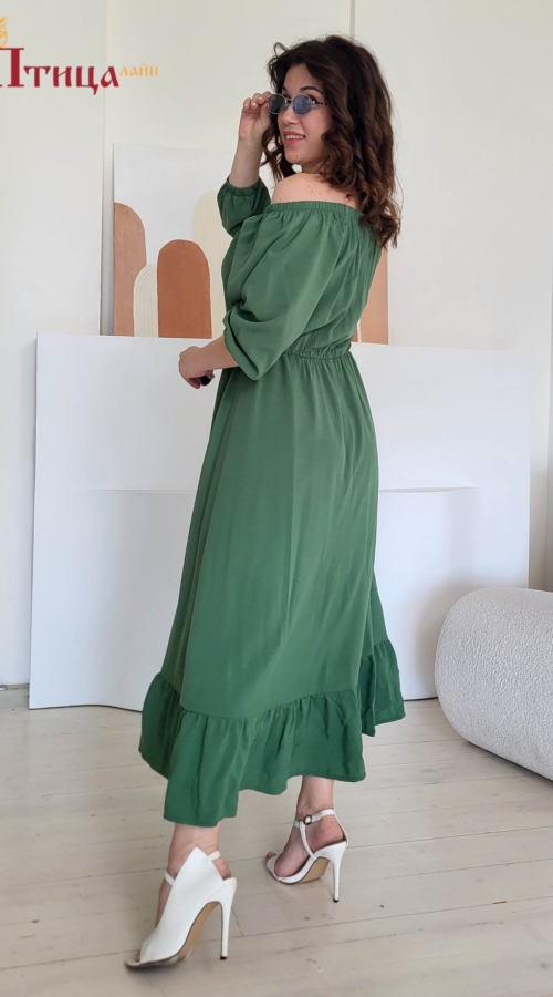 Необыкновенной красоты, платье с открытой линией плеча. Данный образ напоминает о море, солнце, летних теплых деньках, вечерних прогулках. Платье отрезное по талии, сборка на эластичную ленту по линии горловин...