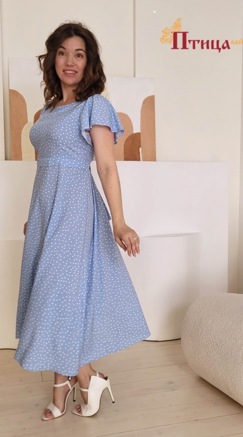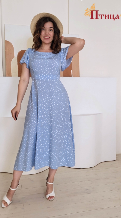 Платье отрезное с завышенной линией талии, полуприлегающего силуэта, линия талии и тонкий поясок, который легко корректирует приталенность модели, подчеркивает женственный силуэт, горловина аккуратная лодочка...