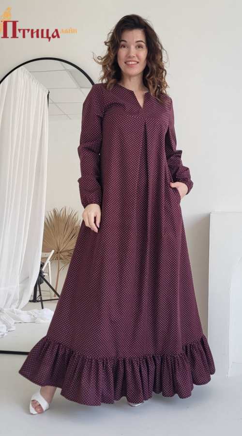 Платье трапециевидного силуэта с V образным вырезом, с боковыми карманами и богатым воланом по низу юбки, динамичный, завораживающий образ. Втачной, длинный рукав, прямой не зауженный на резиночке, позволяет ва...