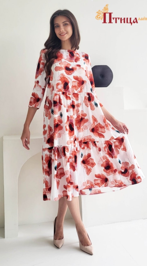 Женственное платье выполненное из нежнейшей плательной ткани, с роскошной ярусной юбкой, отрезное с завышенной линией талии. Равномерная сборка по двум ярусам украшает данный лаконичный образ. Рукав втачной вып...