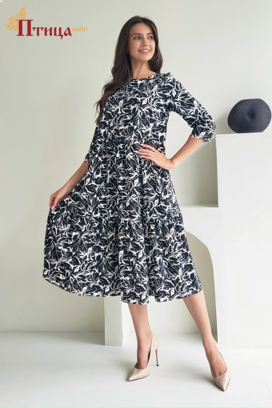Женственное платье, выполненное из нежнейшей плательной ткани, с роскошной ярусной юбкой, отрезное с завышенной линией талии. Равномерная сборка по двум ярусам украшает данный лаконичный образ. Рукав втачной, в...